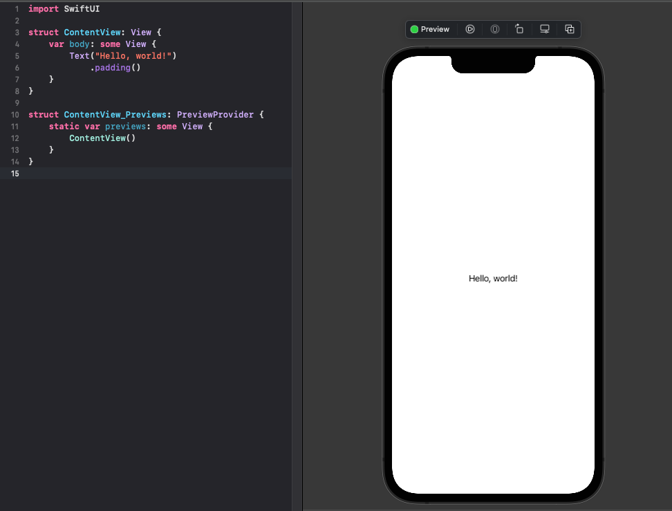 PreviewProvider를 상속받는 struct를, SwiftUI와 동일하게 선언 해주면 오른쪽에 Preview가 생긴다.