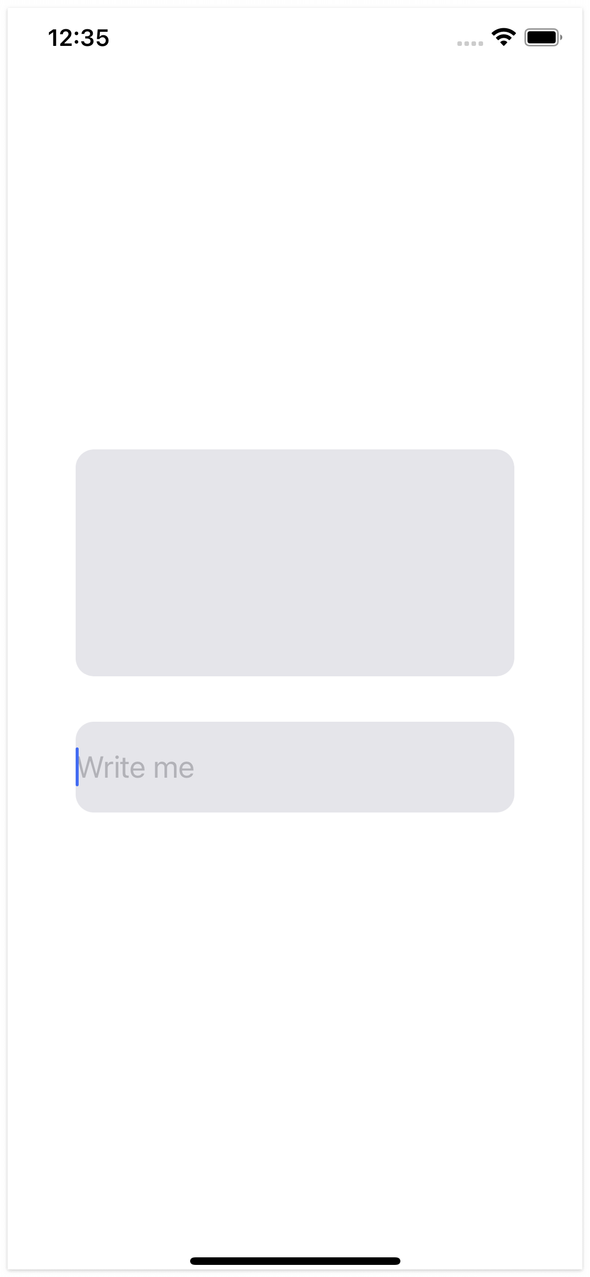 TextField는 Placeholder 속성이 존재하여 바로 "Write me"라는 문구를 넣어 주었다.