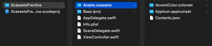 - 에셋 카탈로그 폴더(appiconset, colorset, imageset 등)