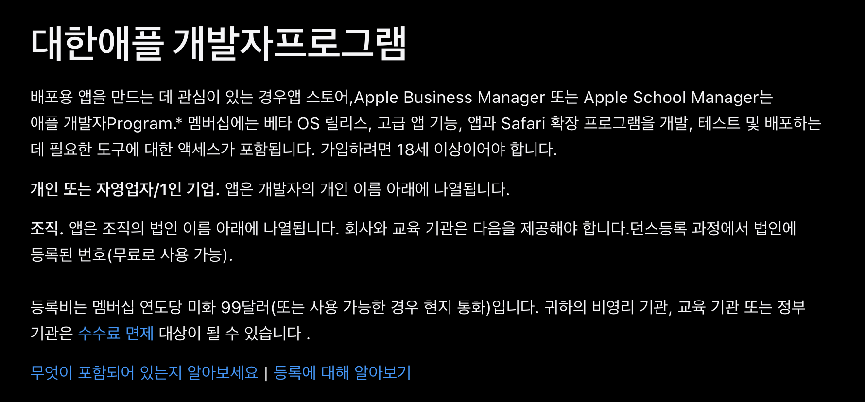 [Apple] 애플 개발자 계정(Apple Developer Program)의 종류, 차이 본문