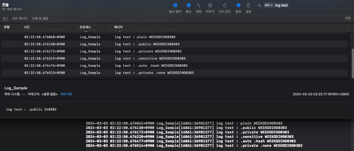 Logging API는 기기의 내부가 아닌 console.app에서 App의 Runtime동안 끊임없이 메시지를 계속 출력하기 때문에,